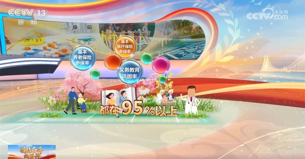 這五年,經濟發展、科技進步的成果實打實地轉化為群眾的獲得感和幸福感。我國已建成全球規模最大的教育體系、社會保障體系、醫療衛生體系,義務教育鞏固率和基本養老保險、基本醫療保險參保率都在95%以上。