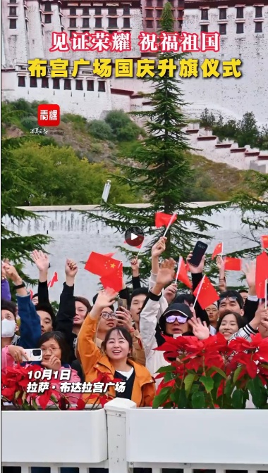 讓我們一同走進這莊嚴時刻,看五星紅旗在布達拉宮前、珠峰腳下、草原之上冉冉升起,聽國歌在河谷間、古城里、村落中激昂回蕩,感受西藏人民對祖國最深沉、最持久的愛!