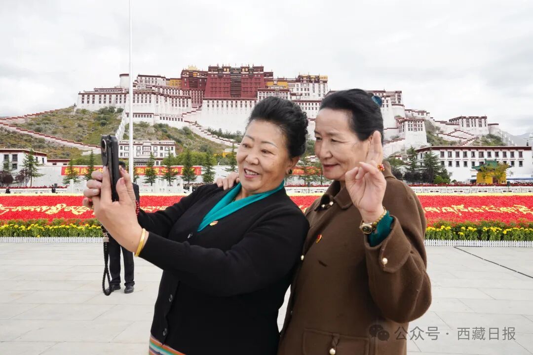 10月1日,西藏自治區慶祝中華人民共和國成立76周年 “升國旗、唱國歌”儀式在布達拉宮廣場舉行,群眾在合影留念。記者 潘多 攝