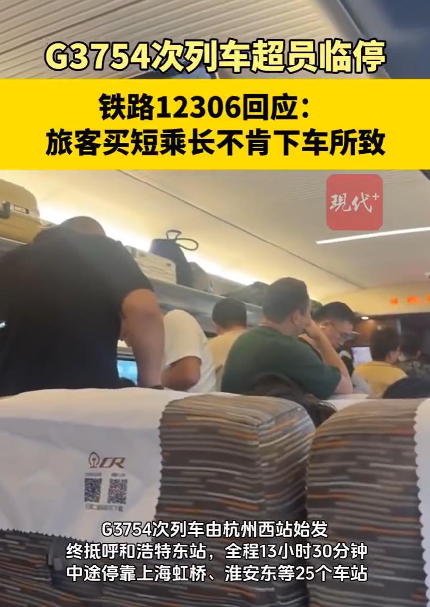 據(jù)乘坐該列車的多名乘客表示,G3754次列車當(dāng)天在張家港站臨停40分鐘左右,短途的不給補(bǔ)票,列車員清了一部分人下車,同時(shí)把人分散到車廂各個(gè)位置,才解除預(yù)警,后續(xù)途中又有兩次同樣的超員報(bào)警、列車臨停的情況,最終比計(jì)劃時(shí)間晚點(diǎn)了1個(gè)多小時(shí)。