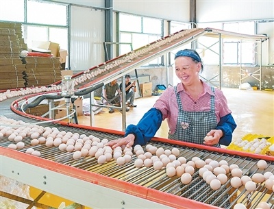 貴州省晴隆縣,東西部協作項目資金支持的一家蛋雞養殖場內,工人在分揀雞蛋。