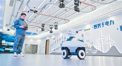 在河北雄安新區雄安科創中心中試基地,一家科技企業的工作人員在調試巡檢機器人。
