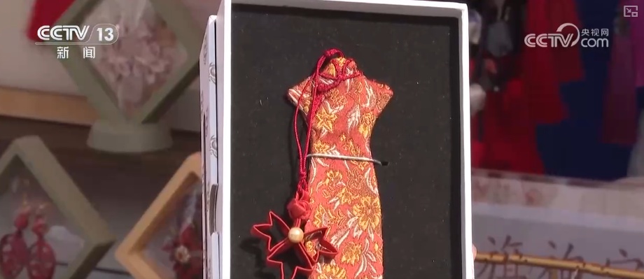 在非遺八大集市上,有許多精致的小物件,比如這枚小書簽,別看它小,可是凝結了三項非遺技藝,包括京式旗袍傳統制作技藝、京繡技藝,以及盤扣制作技藝,亮點多多,十分的精致。