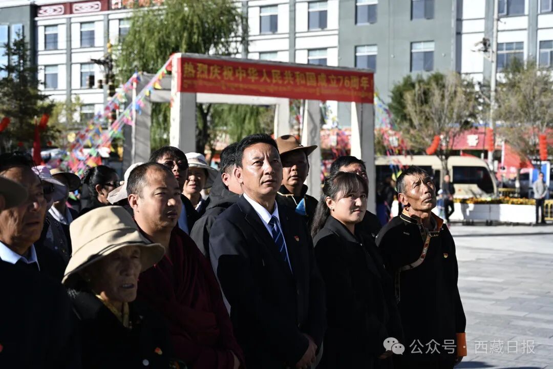 10月1日,日喀則市舉行慶祝中華人民共和國成立76周年“升國旗、唱國歌”儀式。記者 扎西頓珠 楊子彥 通訊員 王乾