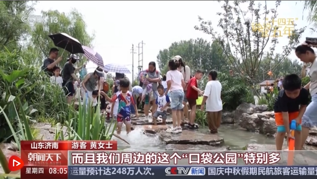 游客黃女士說,山更青了、水更美了,祖國處處的山水都很美。周邊的口袋公園特別多,方便他們鍛煉身體對老年人很有幫助。