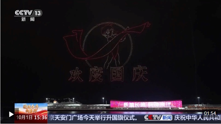 9月30日晚,一場(chǎng)大型光影煙花秀在上海吳淞口濱江上演。伴隨著恢宏而富有神話色彩的交響樂(lè),千架無(wú)人機(jī)緩緩升起,在夜空中匯聚成“哪吒”形象,正式拉開了《哪吒鬧海》的序幕。光影秀之后,絢爛的煙花點(diǎn)亮了整個(gè)濱江夜空,一束束煙花絢麗奪目,盛大壯觀。現(xiàn)場(chǎng)市民群眾共同慶祝新中國(guó)華誕,祝福偉大祖國(guó)繁榮富強(qiáng)。