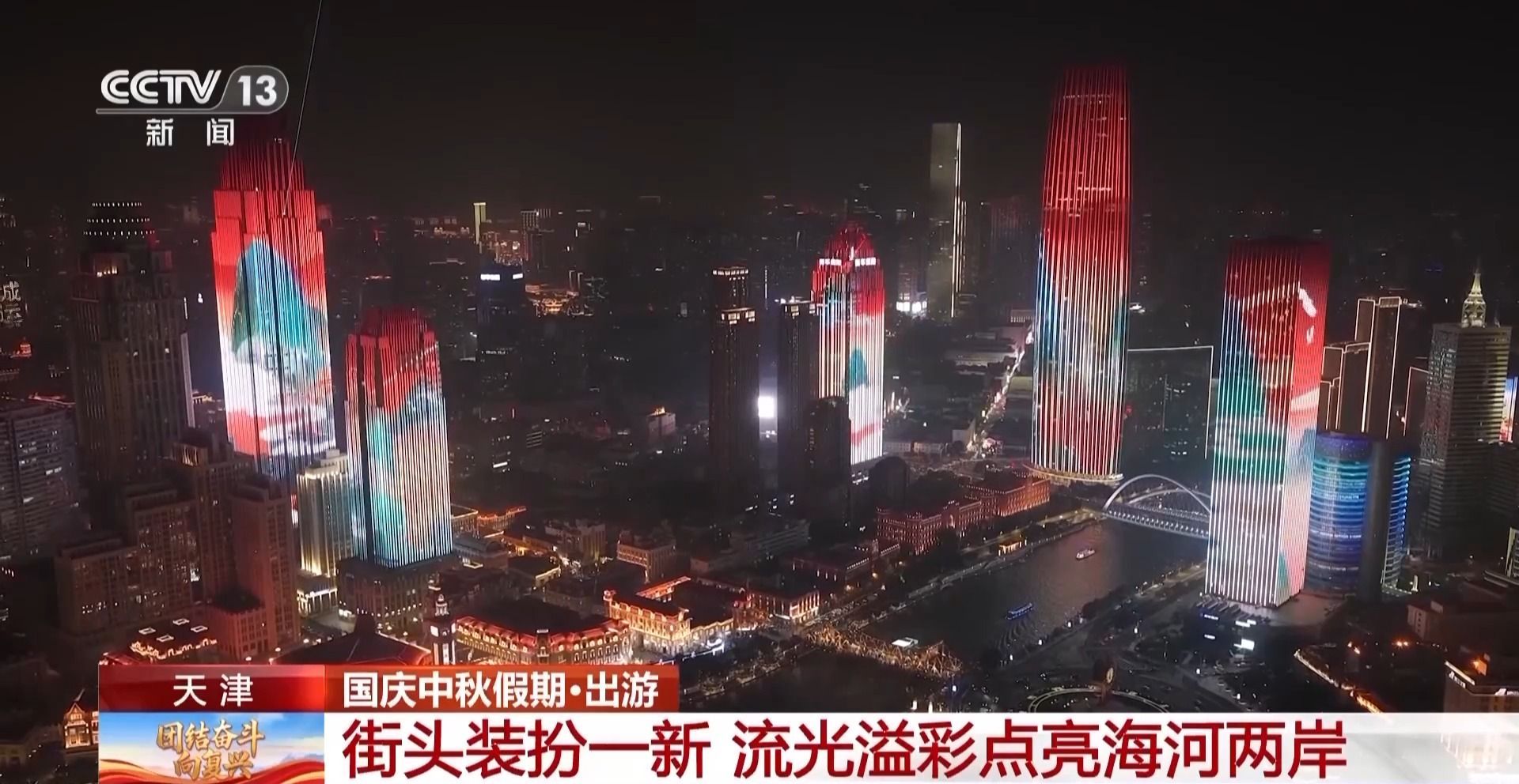 為慶祝國(guó)慶,天津街頭裝扮一新。1.8萬(wàn)面國(guó)旗裝點(diǎn)城市街道,1.7萬(wàn)多個(gè)花箱花籃鮮花盛開,80個(gè)新建提升的口袋公園全面開放,各個(gè)綠化節(jié)點(diǎn)、美麗街角裝扮一新,處處洋溢著喜慶祥和的節(jié)日氛圍。同時(shí),天津還對(duì)海河夜景燈光秀進(jìn)行了升級(jí),打造國(guó)慶主題創(chuàng)意燈光秀。燈光秀既展現(xiàn)了長(zhǎng)城、黃河、長(zhǎng)江等祖國(guó)壯麗風(fēng)光,也呈現(xiàn)了天津七里海濕地、盤山秋色等本地美景,一派喜氣祥和。