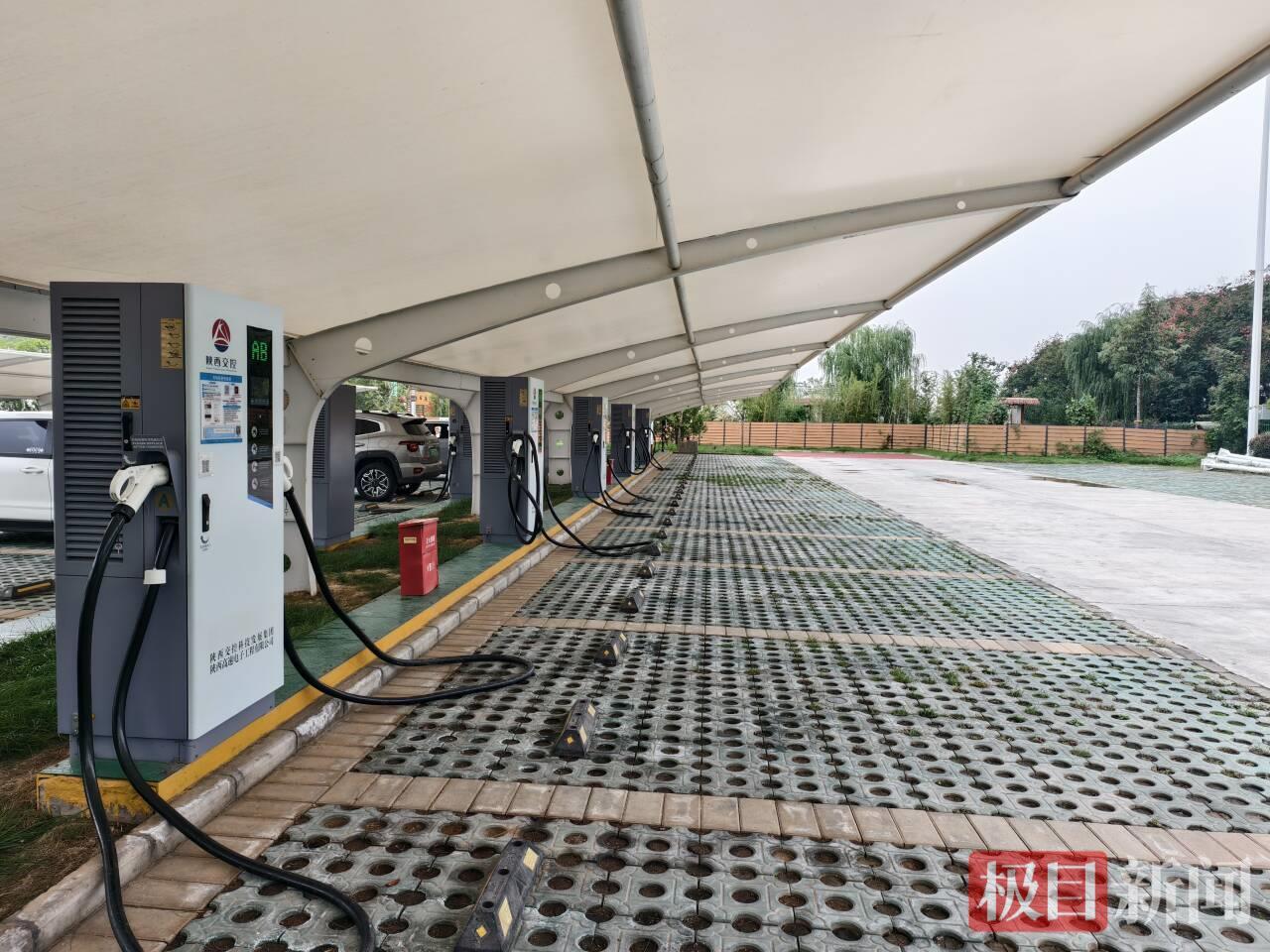 10月2日,極目新聞記者走訪了西安兩處高速公路服務區充電站,均無車輛排隊等待充電的情況,空充電車位較多。