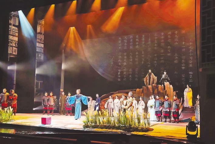 湖北日報訊 (記者農(nóng)新瑜、通訊員吳夢秋)10月1日晚,中國首部睡虎地秦簡題材歷史話劇、由長江人民藝術(shù)劇院創(chuàng)排的《云夢軼事》在湖北劇院首演。作為2025長江文化藝術(shù)季“靈動長江”舞臺藝術(shù)精品展重要劇目之一,該劇以沉浸式的舞臺美學(xué)、跨越古今的敘事視角,為觀眾帶來了一場穿越時空的觀劇體驗。