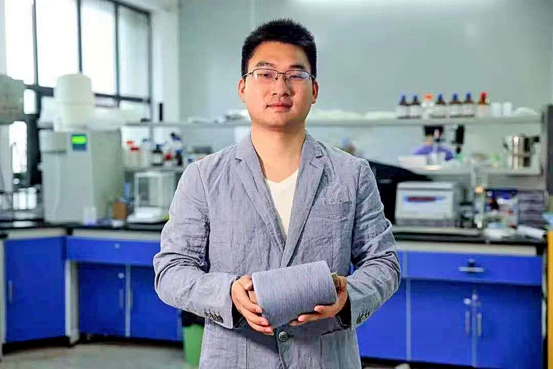 項(xiàng)目參與人徐傲穿著玄武巖防護(hù)面料展示 武漢紡織大學(xué)供圖