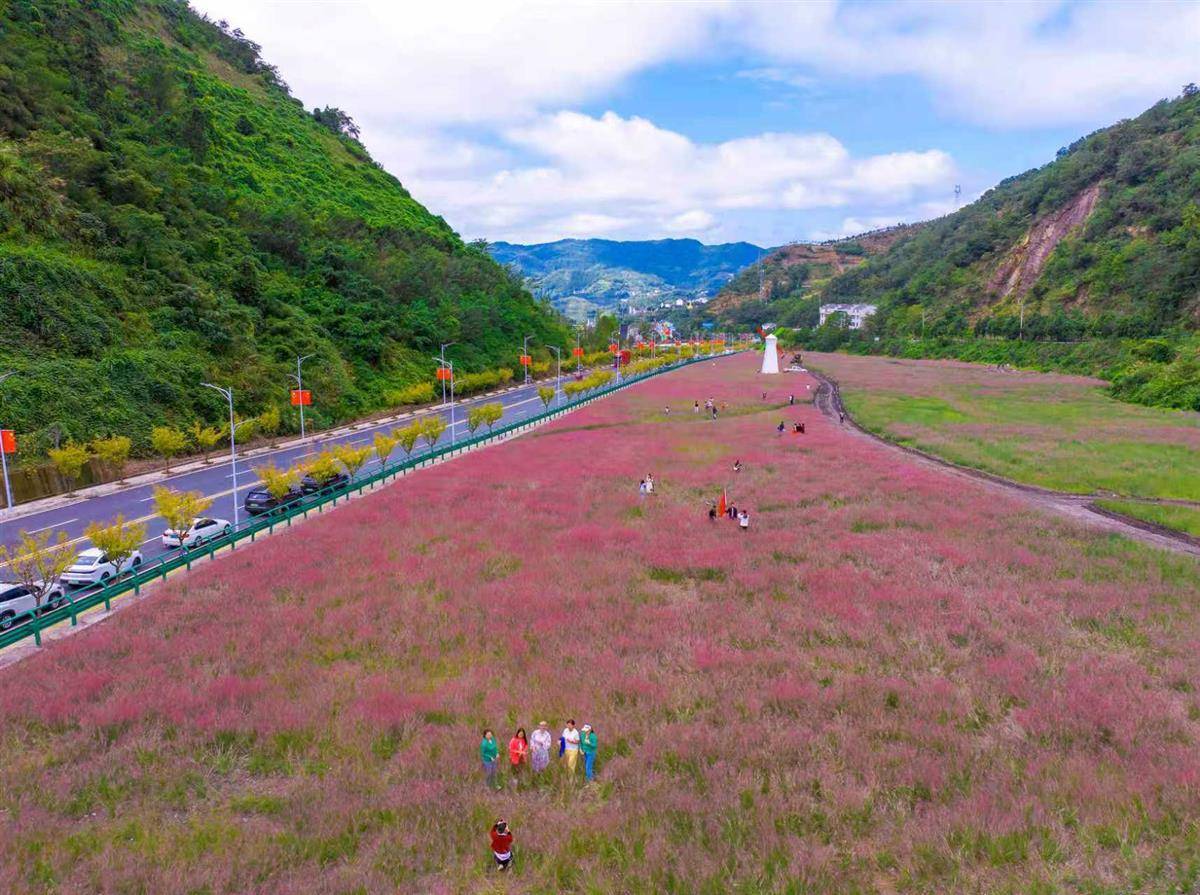 湖北日報訊(記者萬雷萌、通訊員程平、郭小雨、張睿)9月29日,竹山縣上庸鎮(zhèn)鰲魚溝粉黛花海景區(qū)內(nèi),微風(fēng)拂過,成片的粉黛亂子草如粉色云霧般搖曳,與不遠(yuǎn)處的隧道出口、蜿蜒老路相映成趣。村民王先生舉著手機(jī),記錄孩子在花海里奔跑的身影,笑意滿溢:“以前這隧道和老路間的深坑又危險又礙眼,現(xiàn)在成了粉黛花海,國慶假期這兒最亮眼!”