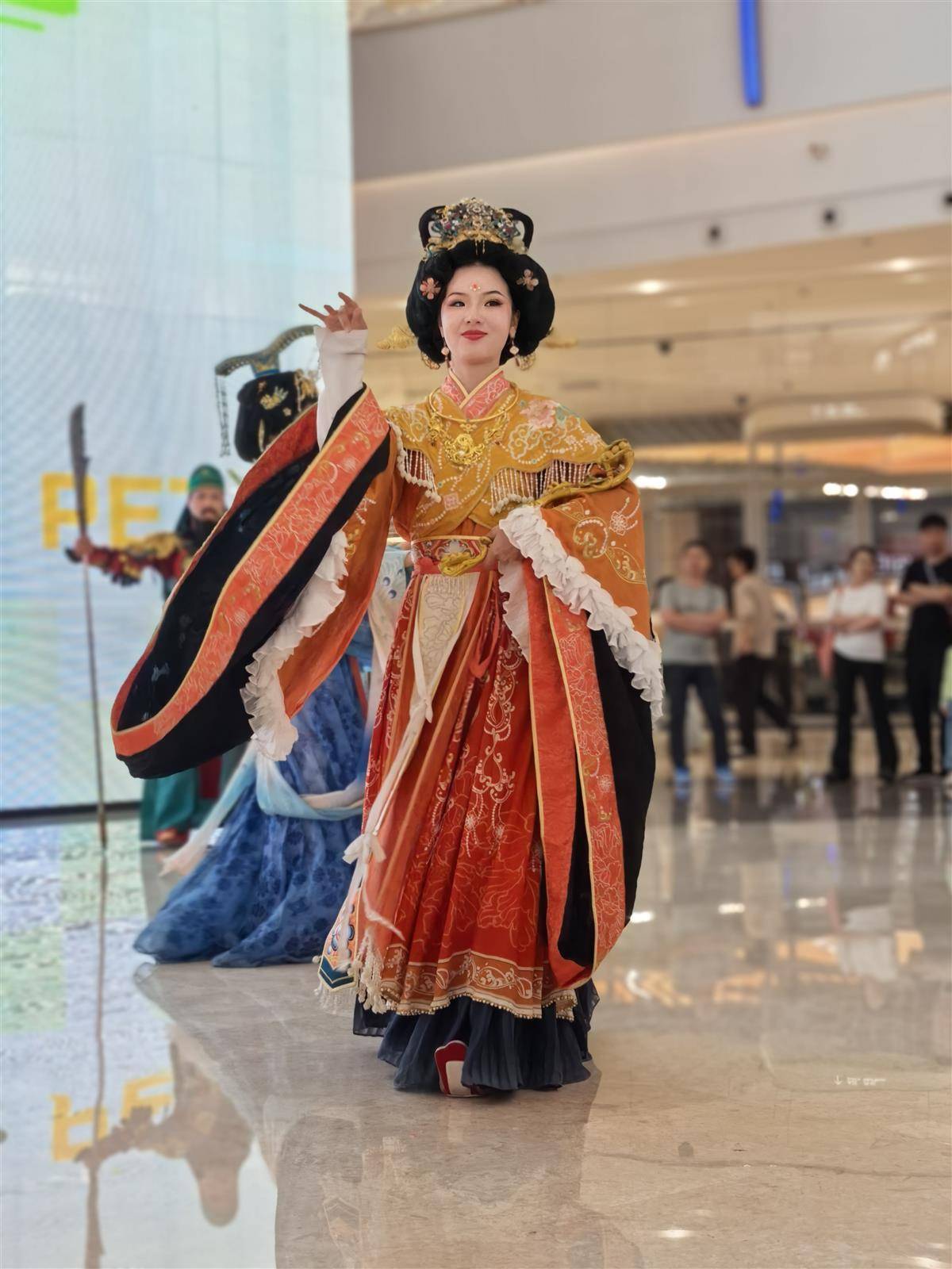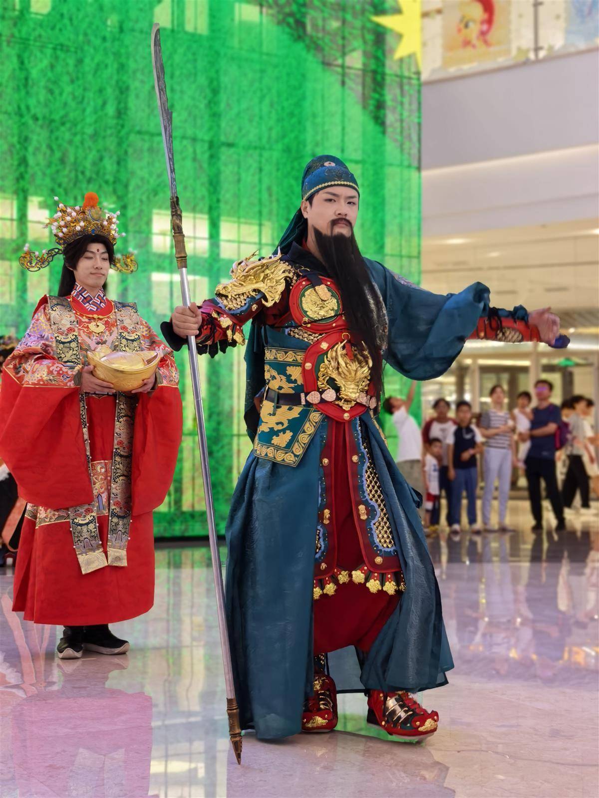 10月2日晚,武漢地標性商業綜合體——武商夢時代內客流如織,節日氛圍濃厚。商場巧妙地將民俗文化融入現代商業場景,由工作人員扮演的“財神”、“關公”等經典形象穿梭于人群之中,與游客親切互動、合影留念,現場歡聲笑語,其樂融融的景象成為假期夜間消費市場的一抹亮色。(湖北日報全媒記者 劉曙松 攝)