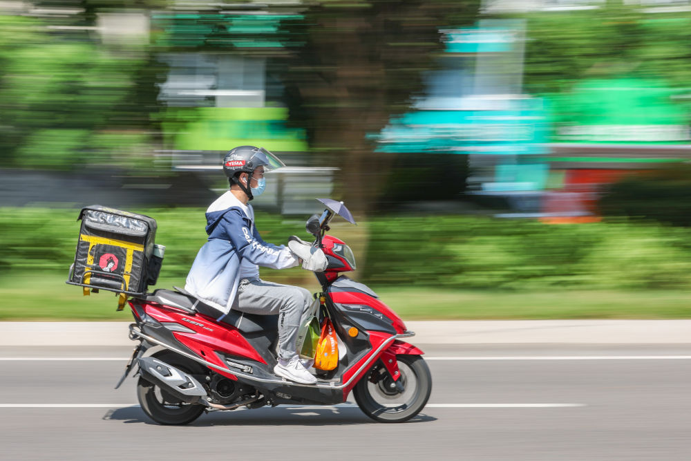 10月1日,在重慶市渝北區,一名外賣小哥在辛勤工作。新華社記者 黃偉 攝