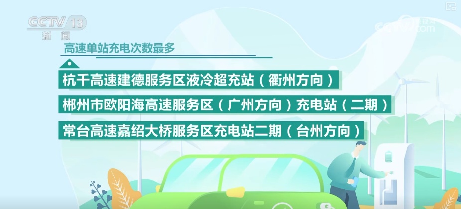 高速單站充電次數最多的是杭千高速建德服務區液冷超充站(衢州方向)、郴州市歐陽海高速服務區(廣州方向)充電站(二期)、常臺高速嘉紹大橋服務區充電站二期(臺州方向)。