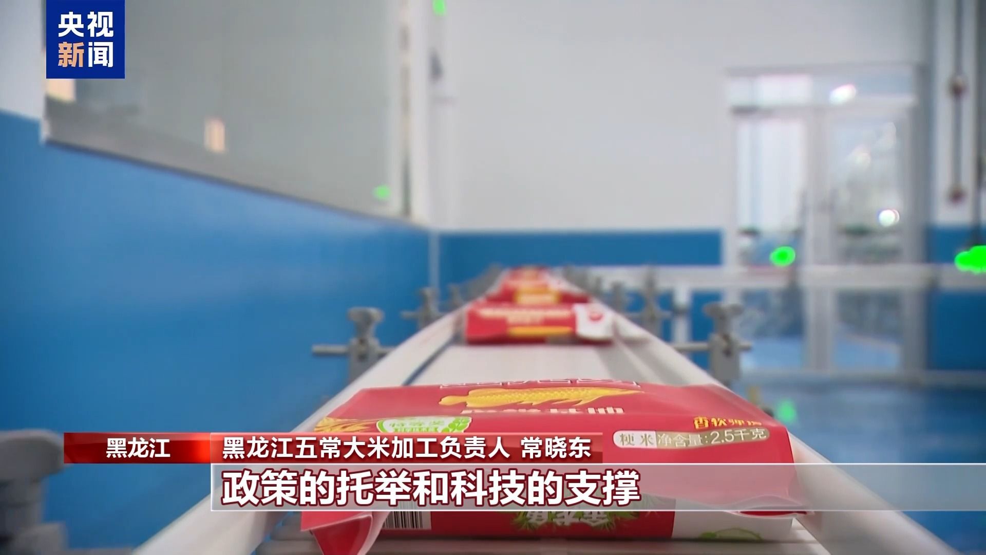 黑龍江五常大米加工負責人 常曉東:我們的生產車間是非常忙碌,大米生產線連續24小時不停機,每天加工生產大米400噸。很驕傲,豐收的底氣得益于政策的托舉和科技的支撐。