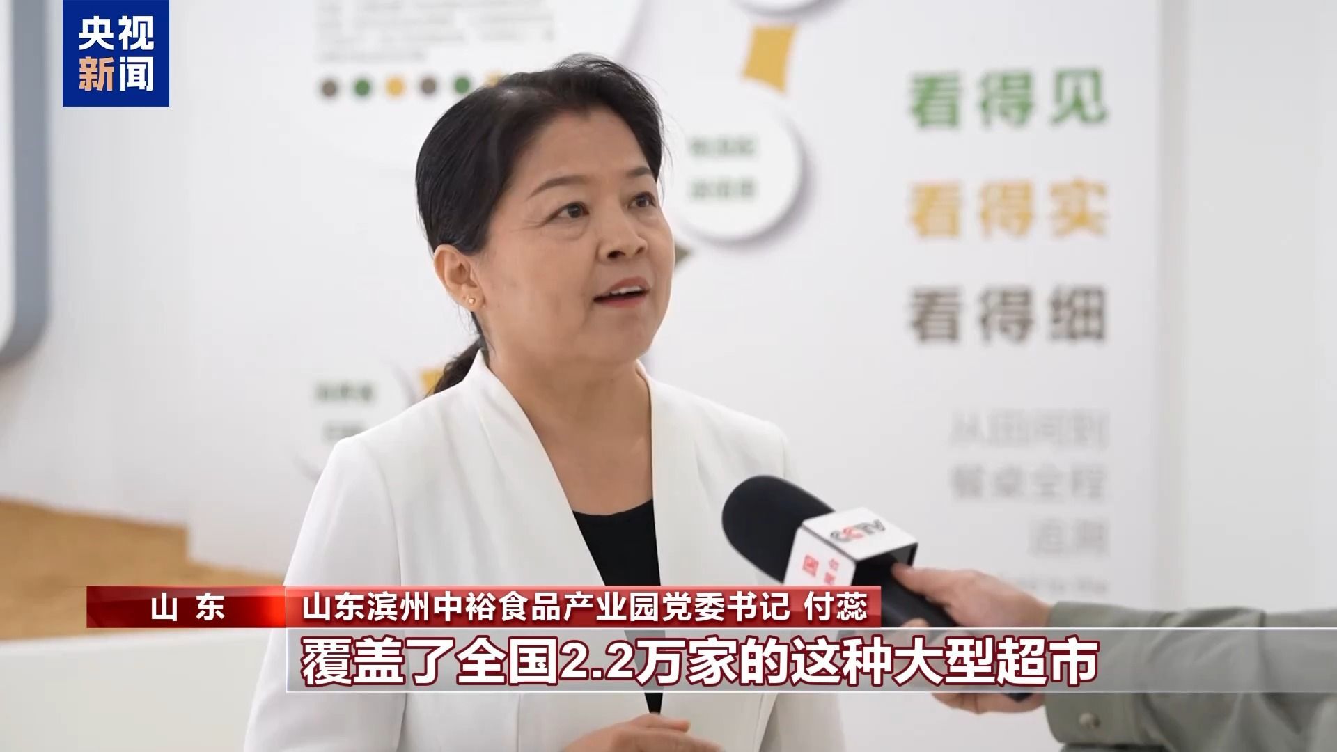 山東濱州中裕食品產業園黨委書記 付蕊:覆蓋了全國2.2萬家的這種大型超市和30萬家中小型超市,能夠滿足整個節假日的供應。