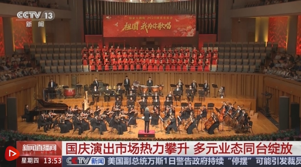 “十一”當晚,《祖國,我為你歌唱——國家大劇院 2025國慶音樂會》精彩唱響。演出匯聚《今天是你的生日,中國》《洪湖水,浪打浪》等經典旋律,讓現場觀眾沉浸式感受醇厚家國情懷,共享國慶佳節的喜悅與榮光。