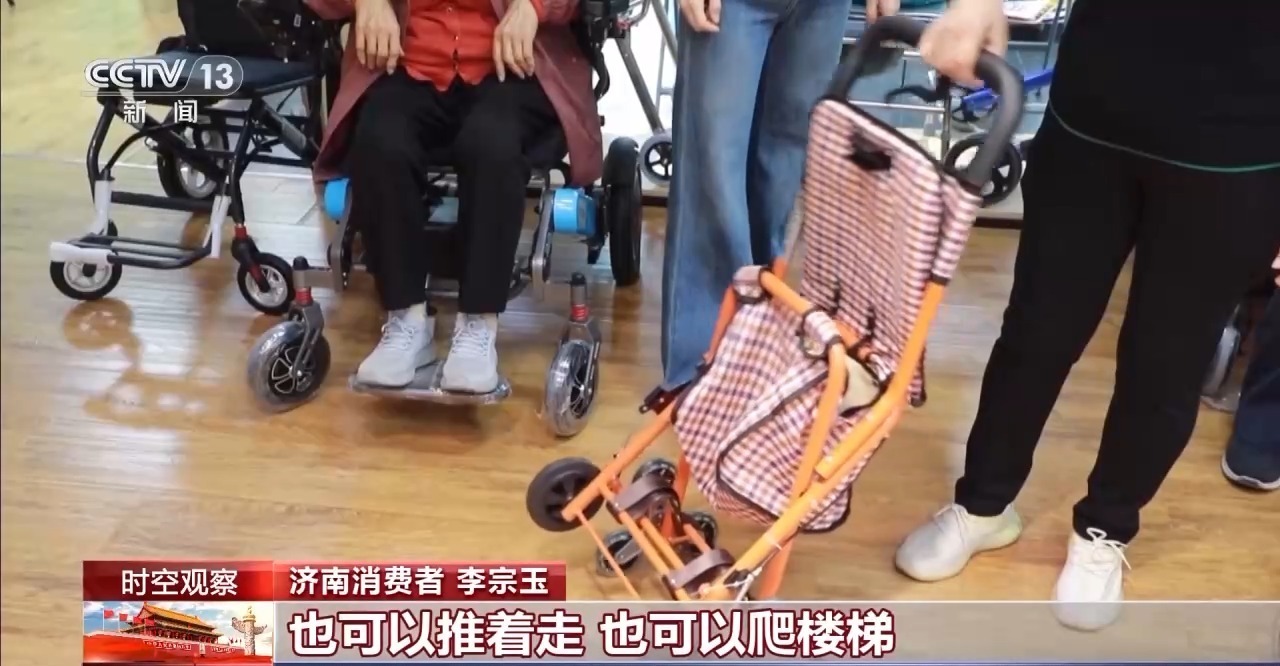 濟南消費者 李宗玉:這個小車很好,功能很全,也可以推著走,也可以爬樓梯。底下還有一個兜,現(xiàn)在買這個小車啊,還有補貼很合適。