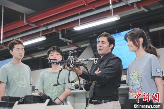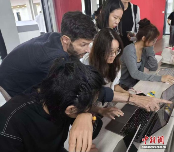 9月25日,英國密德薩斯大學的教師斐然為中央民族大學海南國際學院學生授課。張茜翼 攝