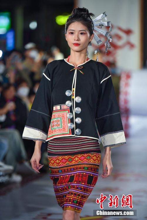 海南黎族傳統織錦技藝煥發新生,走上國際舞臺,圖為模特展示黎錦服飾。駱云飛 攝