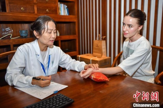 圖為俄羅斯游客在博鰲一齡生命養護中心體驗中醫就診。駱云飛 攝