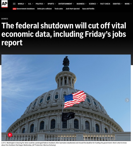 △美聯(lián)社報(bào)道,政府停擺將導(dǎo)致經(jīng)濟(jì)數(shù)據(jù)發(fā)布中斷,這對美聯(lián)儲的相關(guān)決策構(gòu)成了極大挑戰(zhàn)