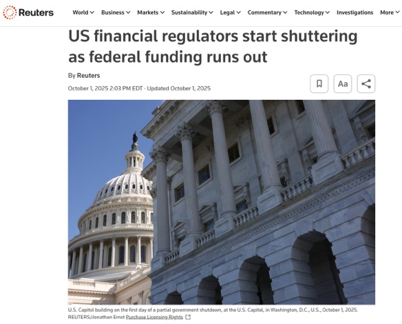 △路透社報(bào)道,由于政府停擺,金融監(jiān)管機(jī)構(gòu)僅保留極少人員維持運(yùn)轉(zhuǎn),IPO審核延遲,可能影響投資人情緒