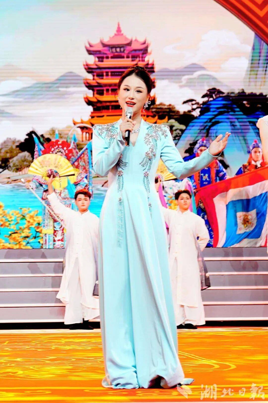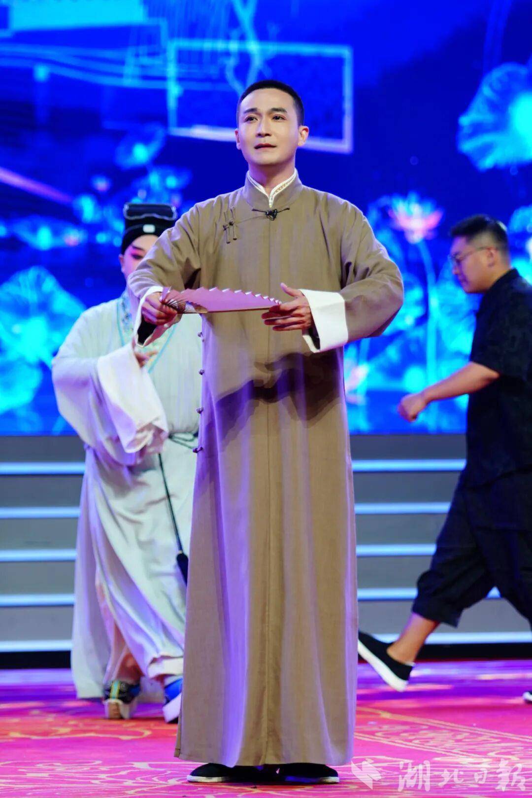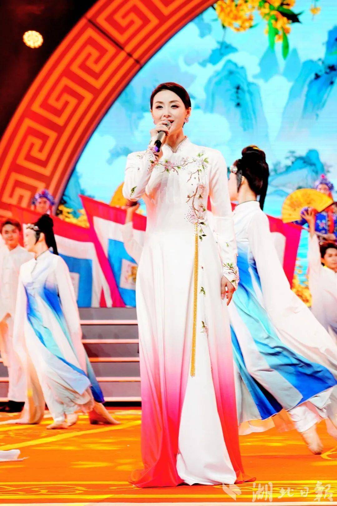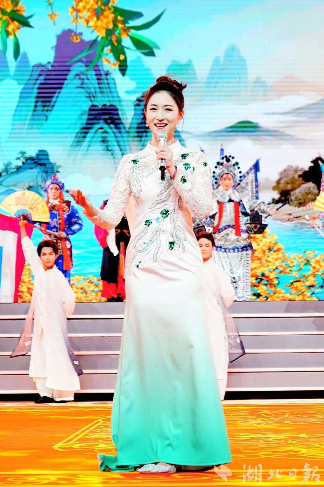 整場(chǎng)晚會(huì)精心設(shè)計(jì)了傳統(tǒng)與創(chuàng)新的對(duì)話。武漢楚劇院一級(jí)演員、梅花獎(jiǎng)得主余維剛與國(guó)風(fēng)音樂唱作人李政寬合作的楚歌《后西廂》,為古老劇種注入現(xiàn)代音樂元素;豫劇男旦韓鵬飛演繹的《抬花轎》風(fēng)趣幽默,展現(xiàn)非遺藝術(shù)的獨(dú)特魅力;而國(guó)風(fēng)歌手唐伯虎Annie演唱的《落》,則以流行方式詮釋戲曲韻味,令人耳目一新。