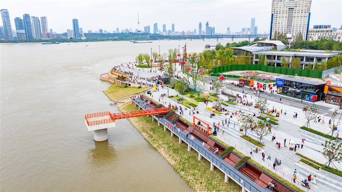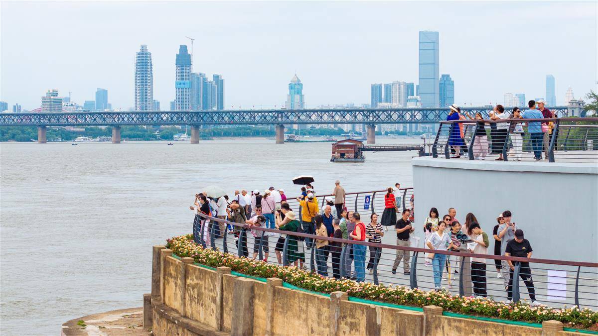2025年10月3日,“十一”小長假第三日,大批市民游客來到新開放的武漢武昌灣1956公園,眺望長江,極目楚天!武昌灣1956公園位于老武昌城文昌門外,從張之洞路至解放閘(巡司河口),全長約1.1千米。和其他江段的江灘一樣,武昌灣也根據設計防洪標準建設了三級步道。不過其他地方比如沿江大道或臨江大道上,無法直接看到長江。而在武昌灣,部分地面被抬高,站在公園外路邊就可以觀江,視野非常開闊。(湖北日報全媒記者 何宇欣 攝)