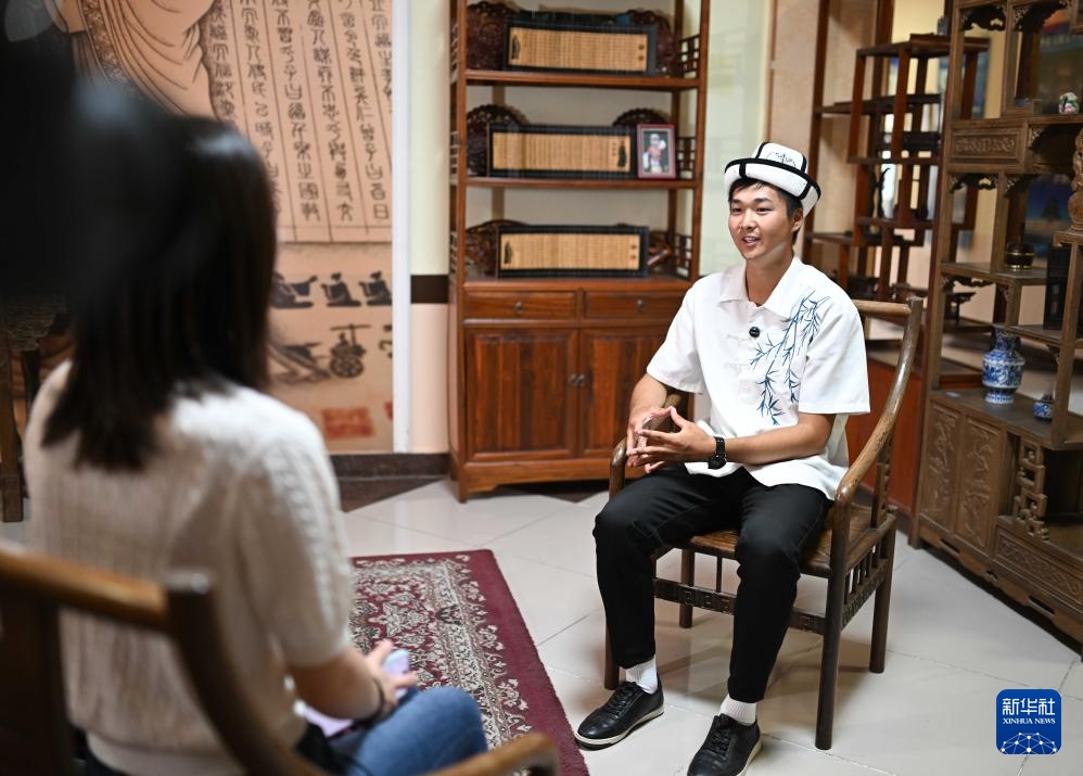 9月18日,在吉爾吉斯斯坦奧什國立大學孔子學院,學生克爾季巴耶夫接受新華社記者采訪。新華社記者 李任滋 攝