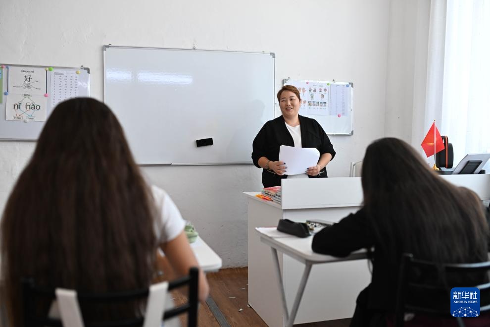 9月22日,在吉爾吉斯斯坦伊塞克湖州卡拉庫爾市,庫巴內奇別科娃在中文培訓中心授課。新華社記者 李任滋 攝