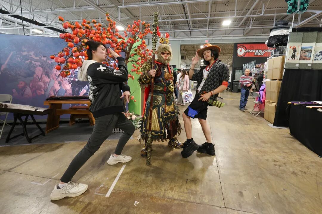 當地時間2025年5月25日,加拿大多倫多,在北美動漫節上,一位動漫coser(角色扮演者)以中國國產游戲《黑神話:悟空》的悟空形象現身,吸引動漫迷合影。中新社記者 余瑞冬 攝