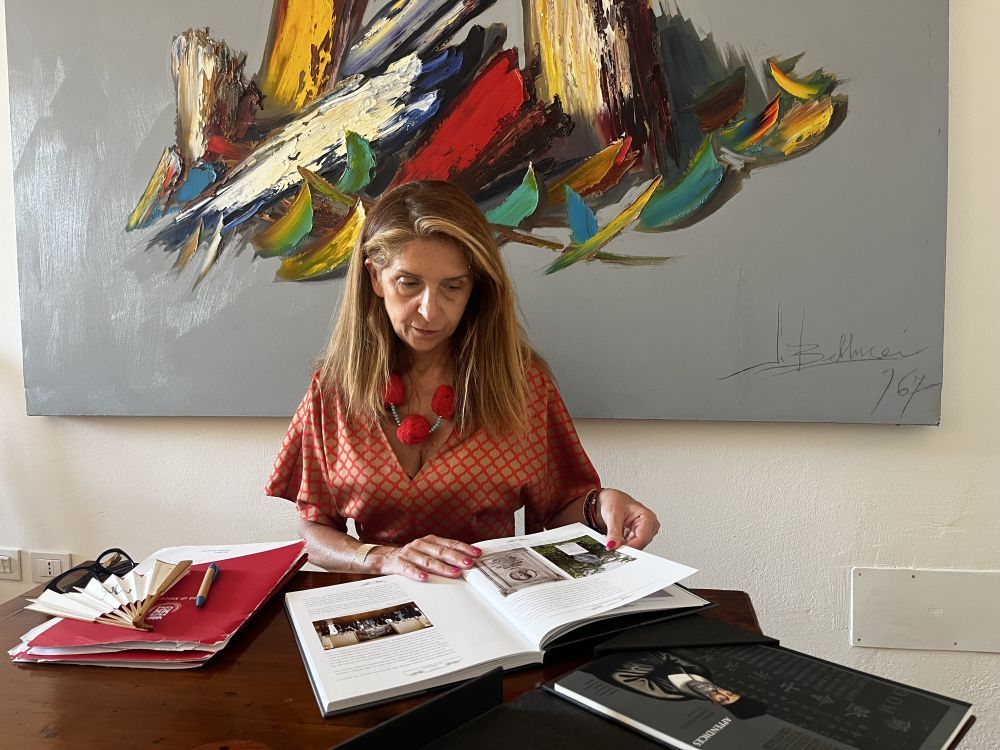 7月4日,在意大利馬切拉塔,馬切拉塔市政府文化部門負責人卡蒂烏莎·卡塞塔翻閱利瑪竇相關書籍。新華社記者李彥南攝