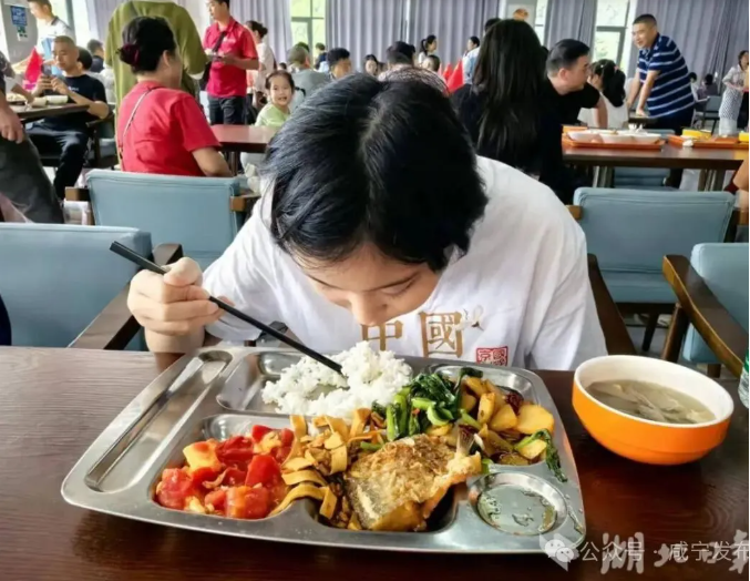 “從網上看到食堂對外開放,特意來感受一下。菜品很有當地特色,孩子們吃得也開心。”來自長沙的徐女士與朋友兩家人,抵達赤壁的第一站也是政府食堂。她表示,孩子們帶著對三國歷史的好奇與期待,計劃前往三國赤壁古戰場景區游玩。