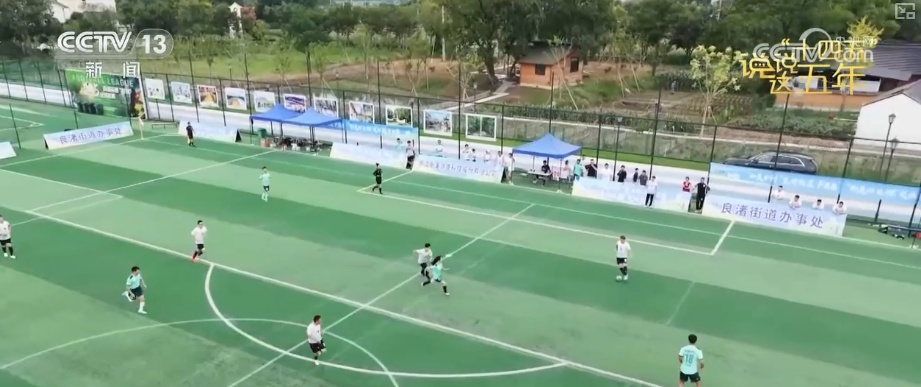 杭州市民沈一斌表示,體育場地越來越豐富,體育賽事也越來越精彩。看足球比賽,這個衣服就是三冠聯(lián)賽的一個吉祥物叫“富寶寶”。這個足球場五年前是一片廢棄的廠房,足球場建起來了以后,每天茶余飯后都會到這里來。以前到家以后就刷手機(jī),但現(xiàn)在都會到這里來鍛煉,自己身體也好了,“三高”也沒有了。