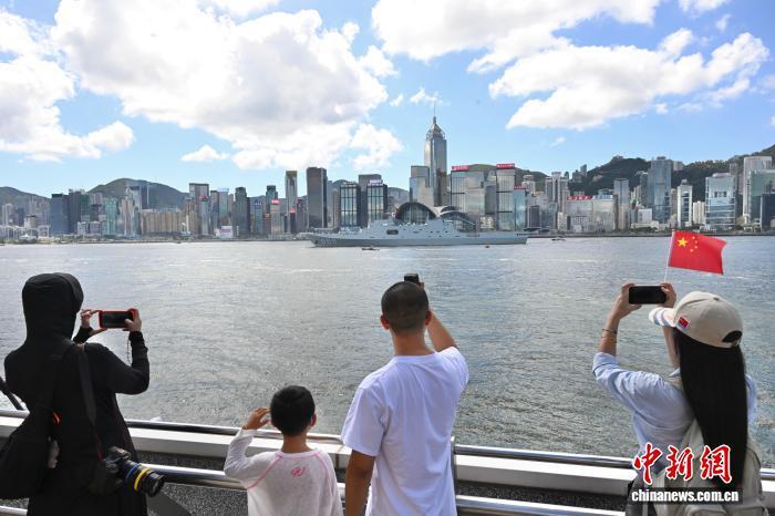 中新社香港10月3日電 (邱兆翔 華凈雯)3日上午,中國海軍83艦編隊結束為期3天的艦艇開放活動離開香港。香港市民與訪港旅客自發來到維港兩岸歡送編隊,也抓住機會再睹海軍風采。