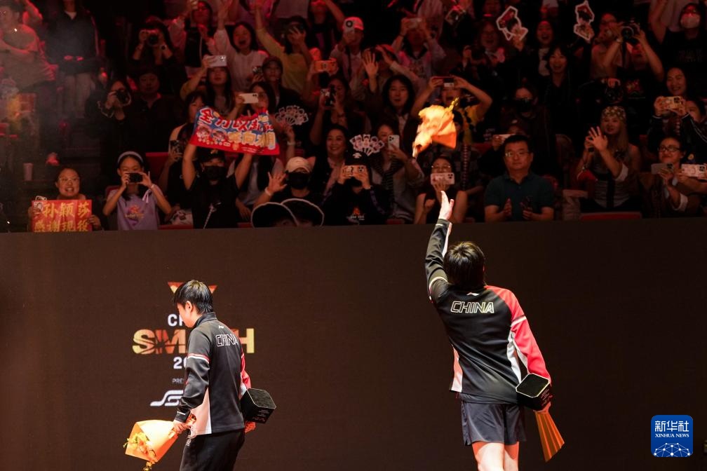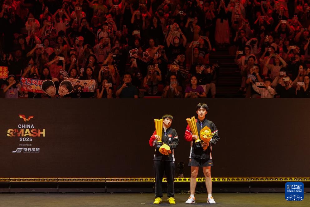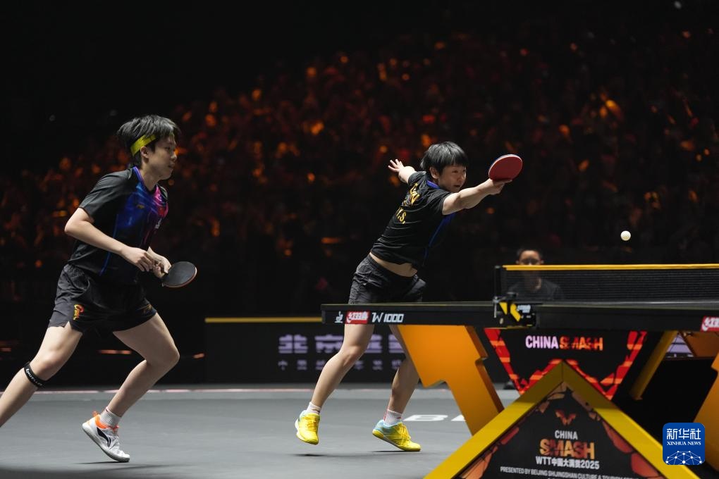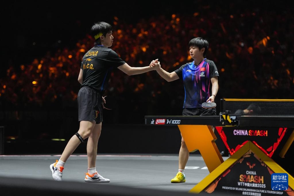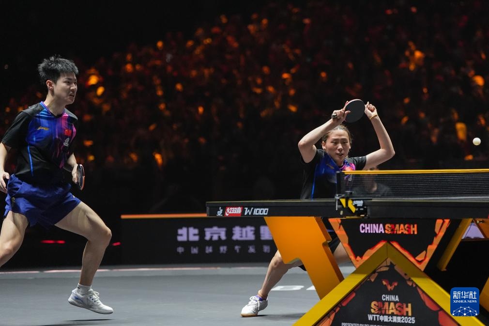 當日,在北京舉行的2025年世界乒乓球職業大聯盟(WTT)中國大滿貫賽混合雙打決賽中,中國組合王楚欽/孫穎莎3比0戰勝另一對中國組合黃友政/陳熠,奪得冠軍。