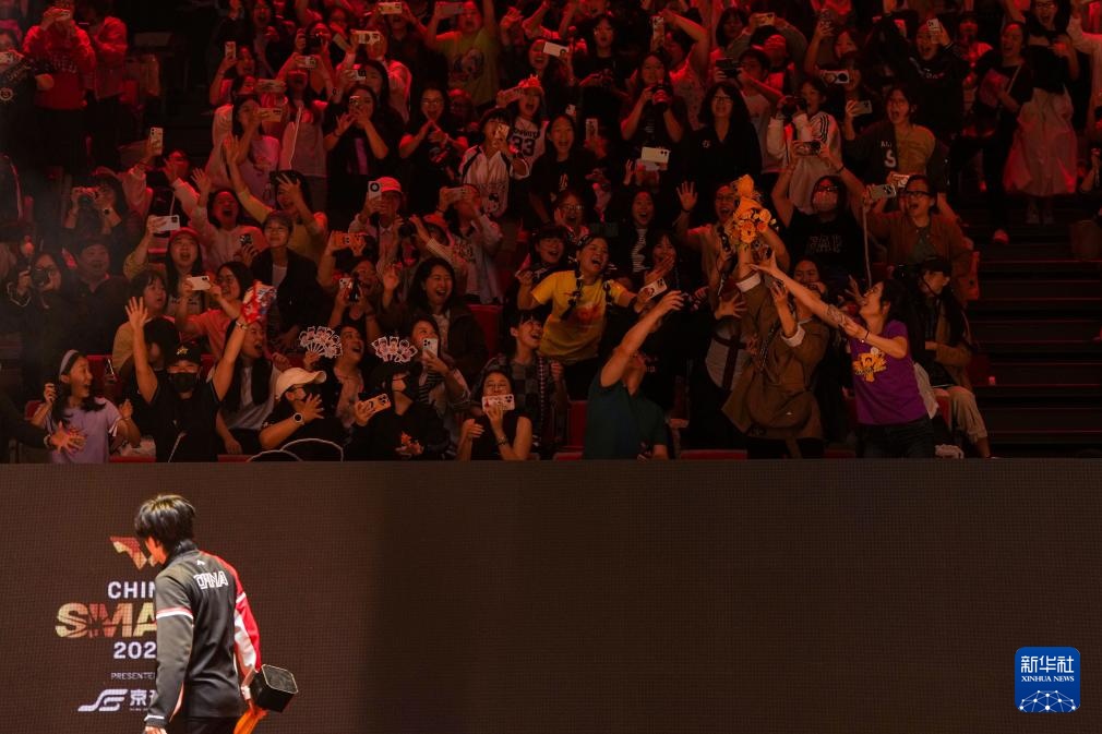 10月3日,王楚欽在頒獎儀式后將手捧花扔向觀眾席。