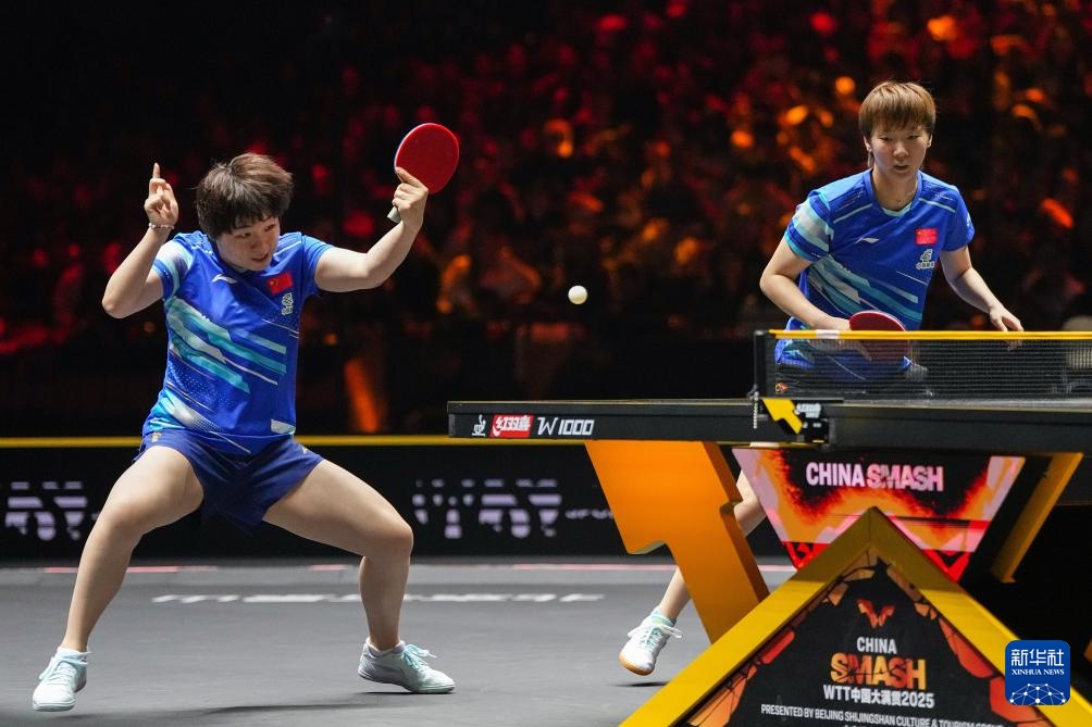 當日,在北京舉行的2025年世界乒乓球職業大聯盟(WTT)中國大滿貫賽女子雙打半決賽中,中國組合蒯曼/王曼昱3比0戰勝中國組合陳幸同/錢天一,晉級決賽。
