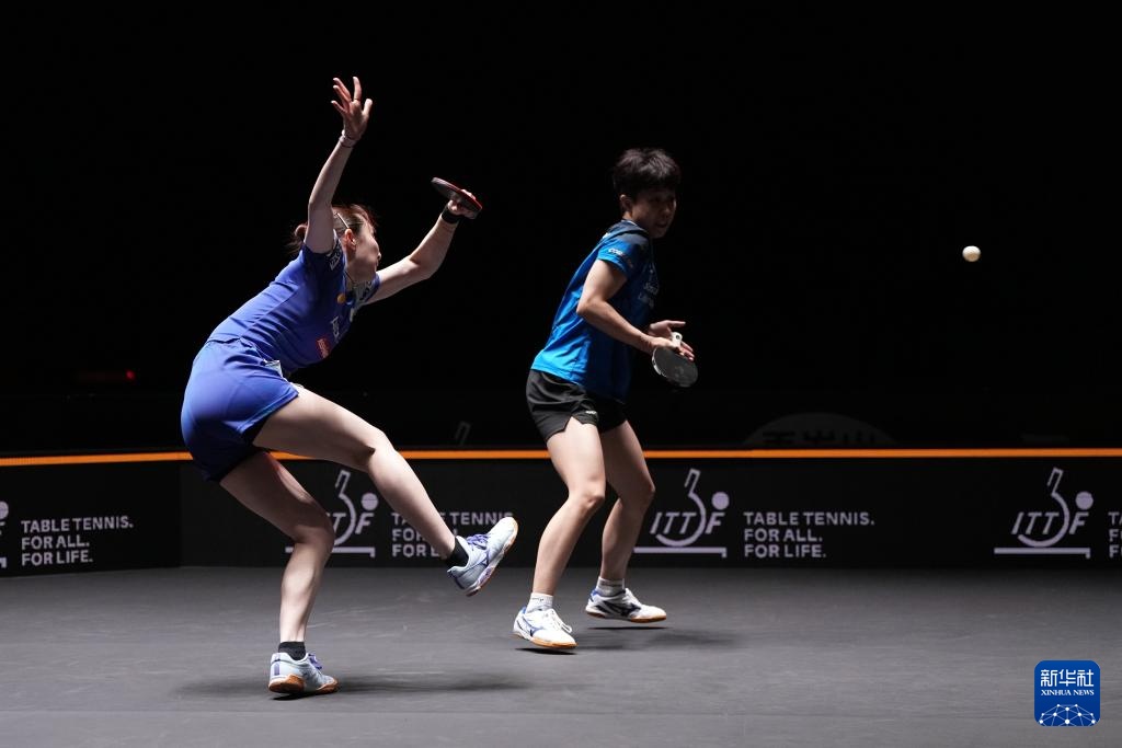 10月3日,早田希娜(左)/朱芊曦在比賽中。