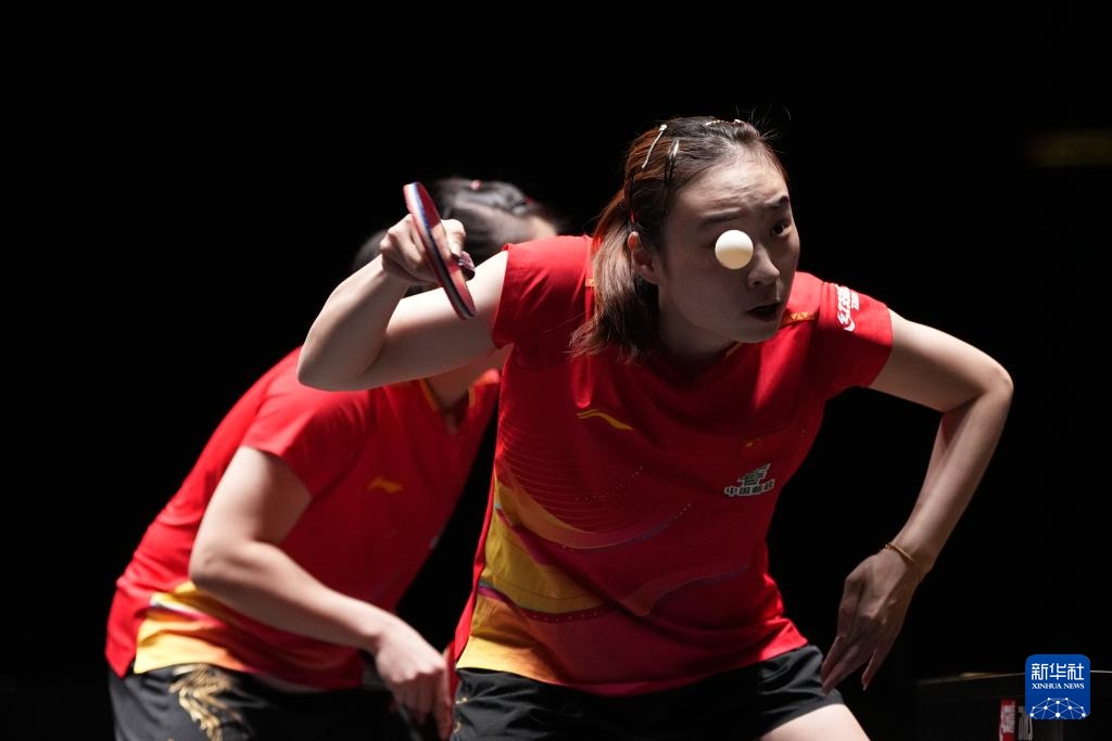 10月3日,早田希娜/朱芊曦(右)在比賽中。