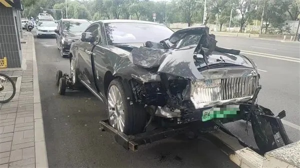 網傳照片顯示,一輛勞斯萊斯閃靈轎車停在公路上,車身損毀嚴重,安全氣囊彈出。車外人員疑似知名車評人陳震。記者對比該車的車牌號,與此前媒體曝光的車評人陳震車輛為同一號牌。有網友稱,該事故發生在北京萬壽路。