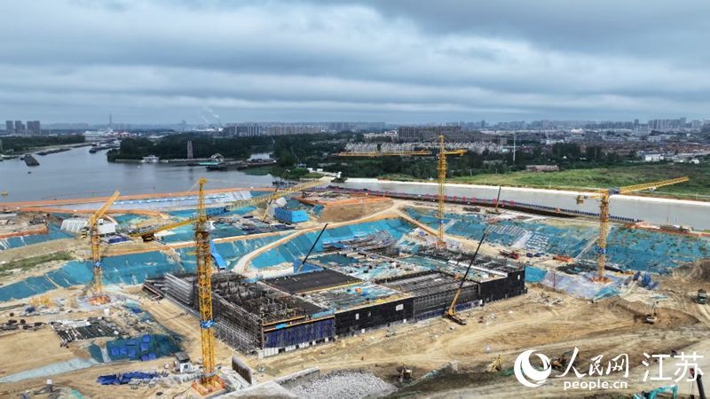 淮河入海水道淮安樞紐二期施工中。人民網記者 馬曉波攝