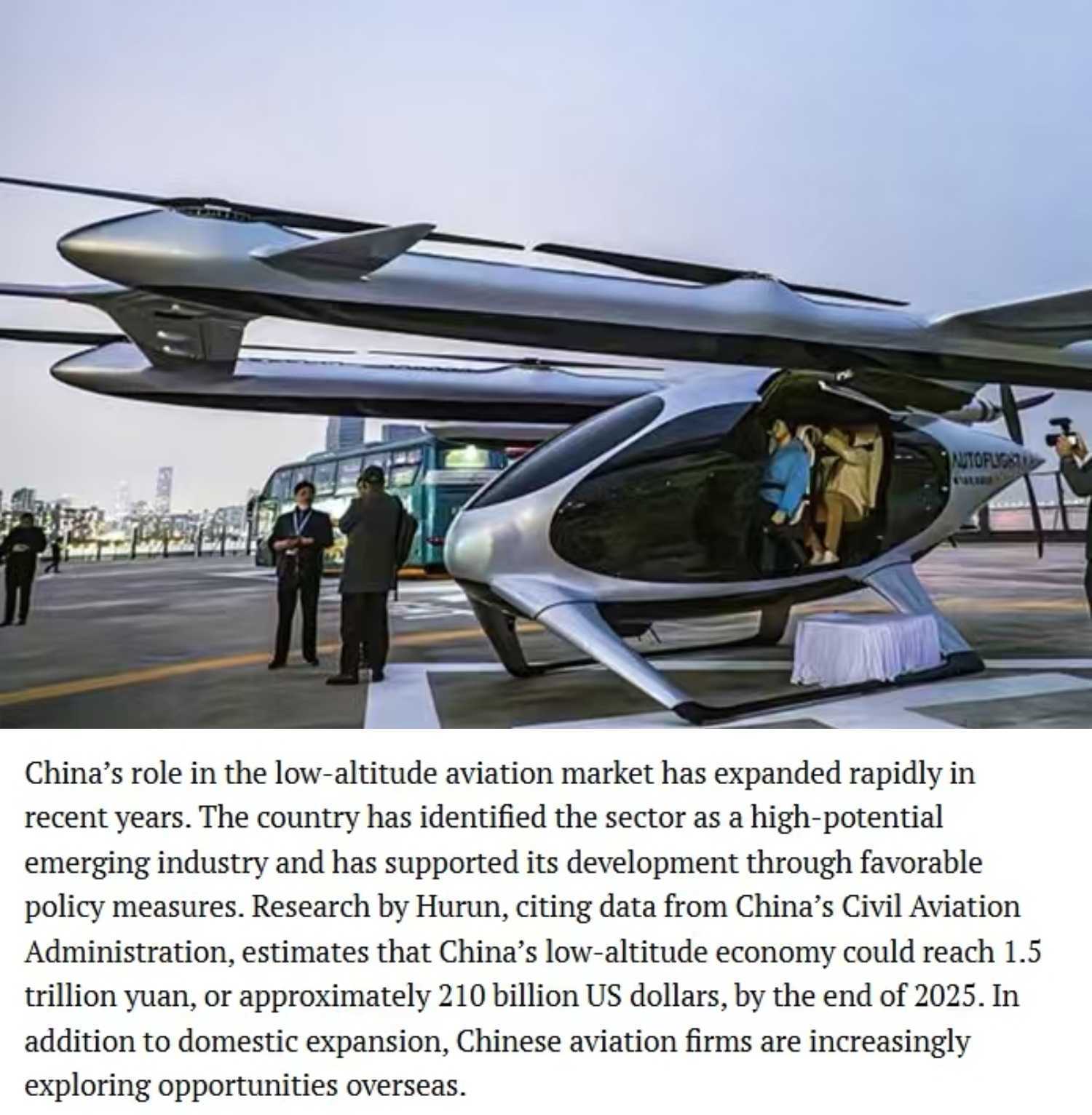 《斯里蘭卡衛(wèi)報(bào)》網(wǎng)站刊文稱,中國在低空經(jīng)濟(jì)市場的地位近年來迅速提升。中國已將這一領(lǐng)域確定為高潛力新興產(chǎn)業(yè),并通過利好政策支持其發(fā)展。報(bào)道還援引中國民航局發(fā)布的數(shù)據(jù),預(yù)計(jì)到2025年底,中國低空經(jīng)濟(jì)規(guī)模有望達(dá)到1.5萬億元人民幣。此外,在深耕國內(nèi)市場的同時,中國企業(yè)也正積極開拓海外市場。