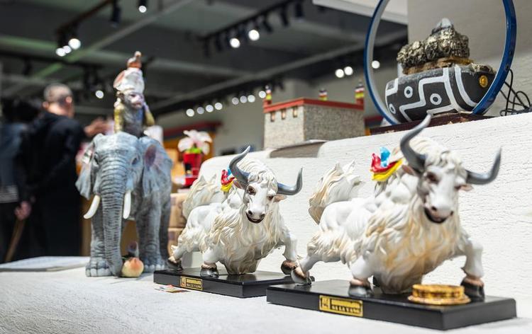 LHASA, Oct. 3 (Xinhua) -- Tashi Badan, 29, is the founder of Yakhore Design Company in southwest China's Xizang Autonomous Region. In recent years, he has led his team to develop a variety of Tibetan culture-themed products such as decorative items, art pieces and fridge magnets. Describing himself as "a bridge," Tashi Badan promotes products through short videos and live streaming, helping local artists reach a broader audience.