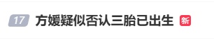 5月11日母親節,方媛公開一張單人照,畫面中她捂著臉頰露著笑容,腰身圓潤,肚子也微微凸起,即便穿著顯瘦的黑色衣服,也明顯看出腹部胖了很多。不少網友認為其懷上三胎。