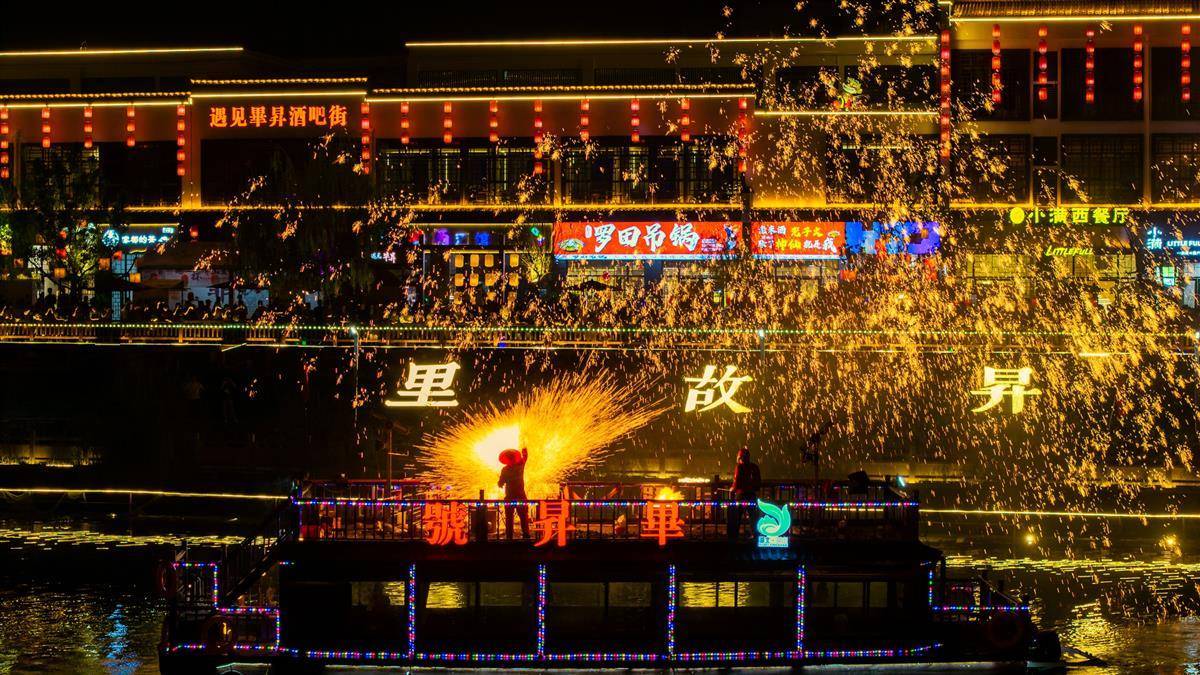 10月1日,英山縣溫泉鎮“夜游英山”景區,上演精彩的打鐵花等非遺表演活動,吸引了大量市民和游客前來觀賞,營造出濃郁的節日氛圍。