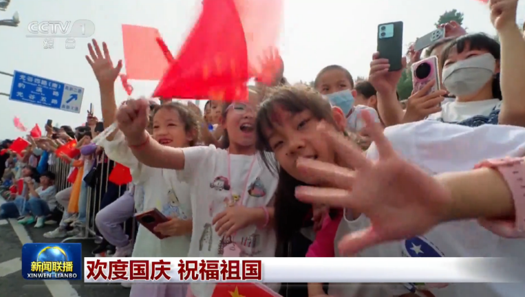 從兩歲孩童到古稀老人,從附近居民到海外游客,現場十萬多觀眾里,有家長把孩子舉過頭頂,有女生坐在男友肩上,大家臉上貼著國旗,手里搖著紅旗,嘴里唱著“我和我的祖國”……