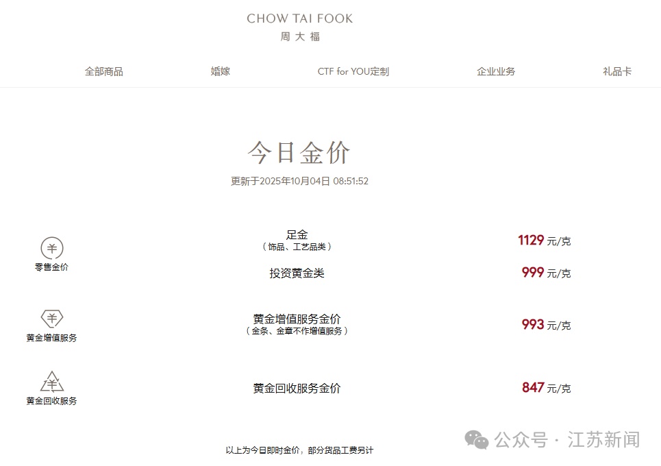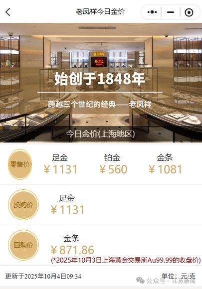 10月4日,國內多個金飾品牌金飾克價再創新高。