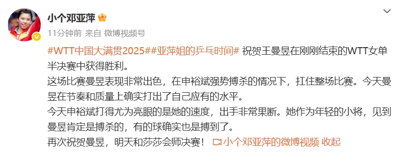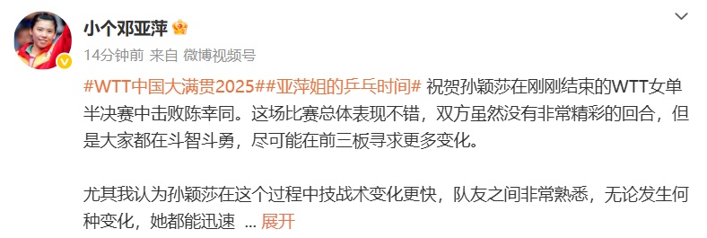剛剛,鄧亞萍發文點評: